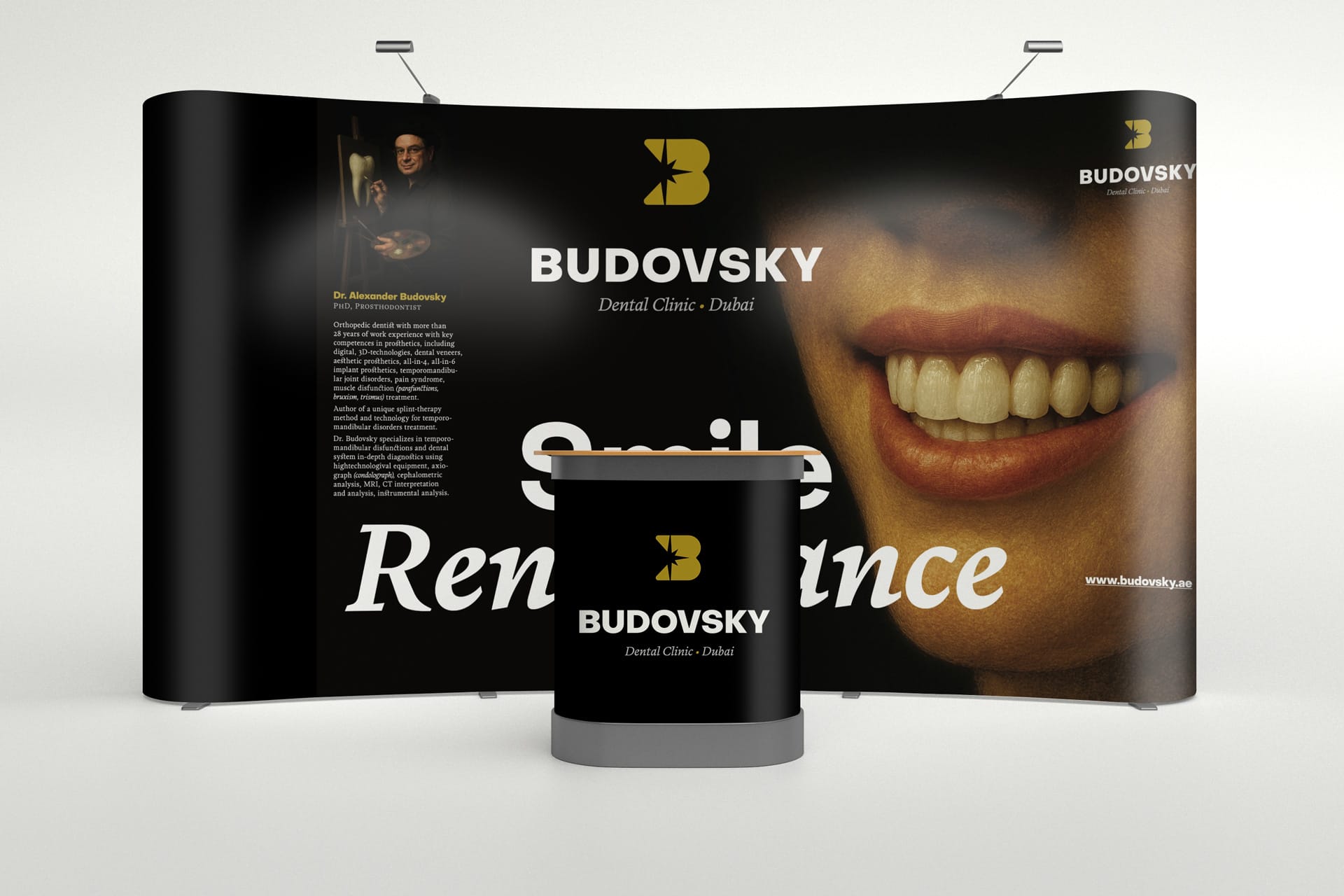 Когда у тебя новая концепция бренда — нужно, чтобы и стенд говорил за тебя. Сделал для клиники доктора Будовского дизайн, мимо которого на выставке не пройдешь мимо.