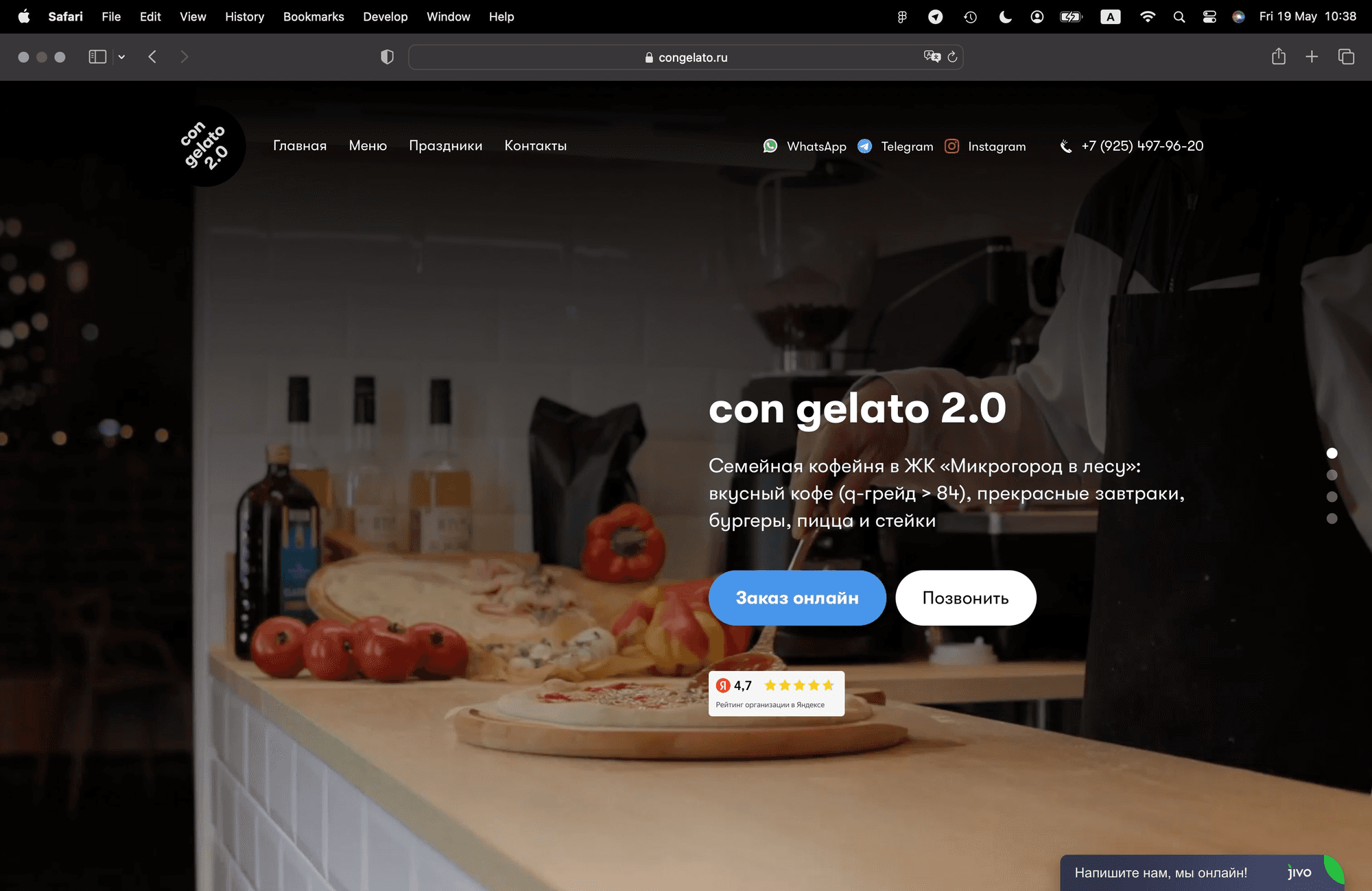 Первый экран сайта встречает гостей видео приготовления нашей пиццы: