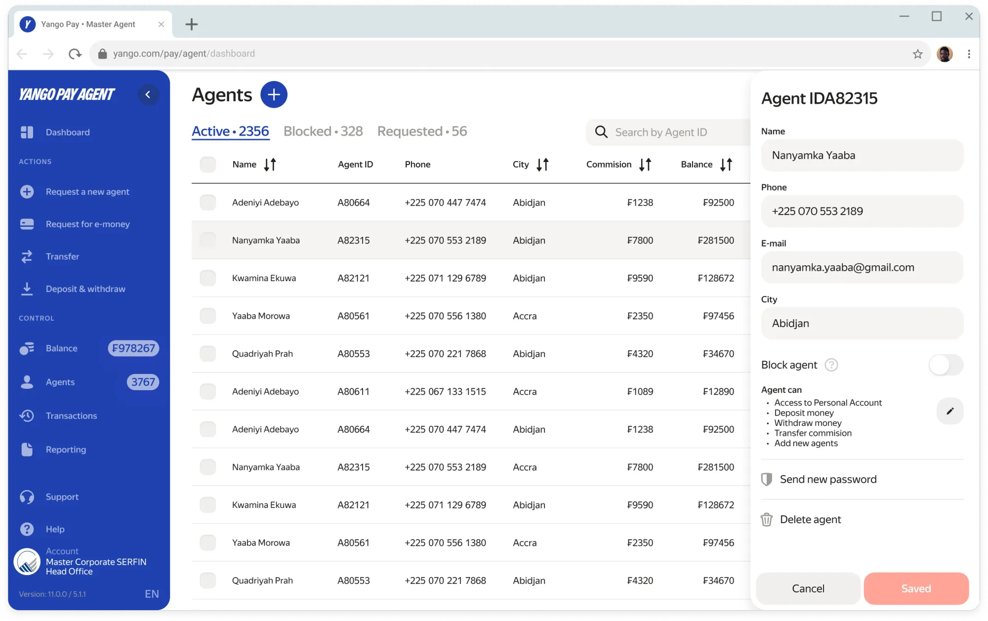 В экосистеме Yango Pay я также спроектировал web-панель для менеджеров, которые курируют сети обменных агентов: