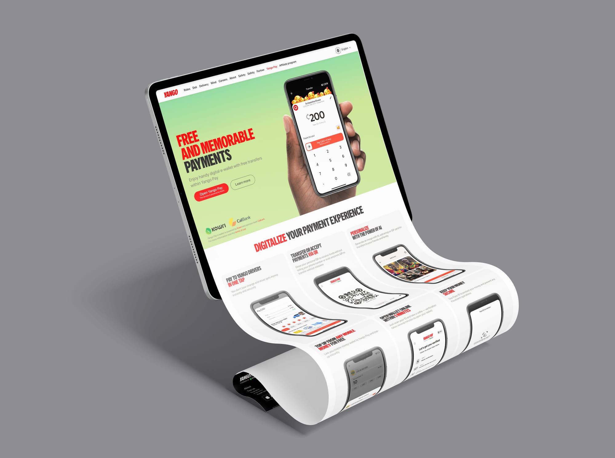 Дизайн — лёгкий, mobile-first и локализованный по визуальному языку и тону. Верстка адаптивная, масштабируемая, согласована с дизайн-системой Yango.